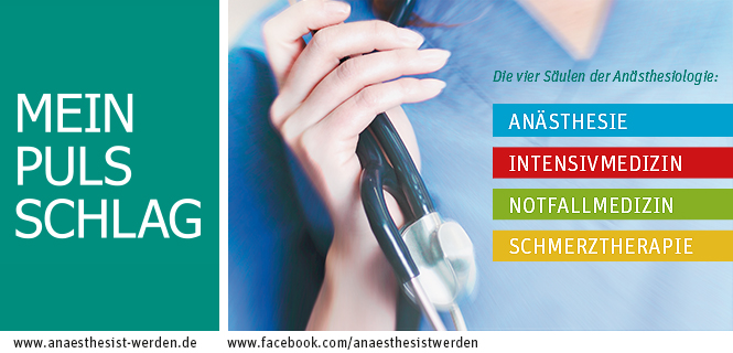 Mit ihren vier Säulen – Anästhesie, Intensivmedizin, Notfallmedizin und Schmerztherapie – zählt die Anästhesiologie zu den vielfältigsten und abwechslungsreichsten Fachgebieten der Medizin. Das ist auch die Botschaft der bundesweiten Informationskampagne des Berufsverbandes Deutscher Anästhesistinnen und Anästhesisten e. V. (BDA) und der Deutschen Gesellschaft für Anästhesiologie und Intensivmedizin e. V. (DGAI) zur Nachwuchsgewinnung.